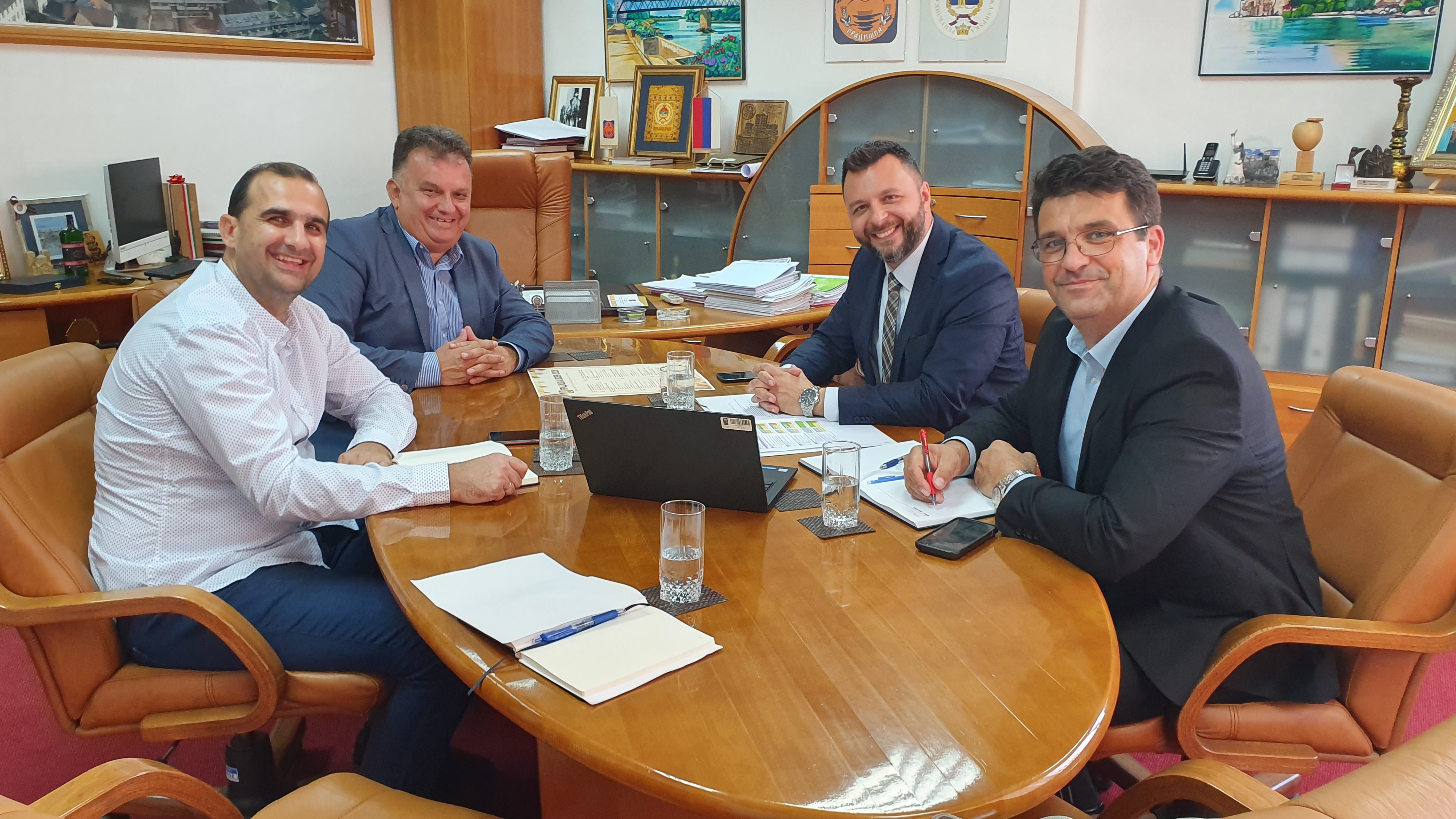 Градоначелник града Градишка, г. Зоран Аџић, заједно са својим сарадником за МЕГ пројекат и директором КП „Водовод“ а.д. Градишка, угостио је представнике UNDP-а у свом кабинету, те је  том приликом разговарано о досадашњој сарадњи, као и будућим пројектним активностима које могу допринијети развоју локалне заједнице. У овој фази МЕГ пројекта, заједничким средствима UNDP-а и Града Градишка, успјешно су реализована два инфраструктурна пројекта у области водоснабдијевања те програм подстицаја за подршку економском развоју и запошљавању, свеукупне вриједности око 2.081.489,78 КМ.