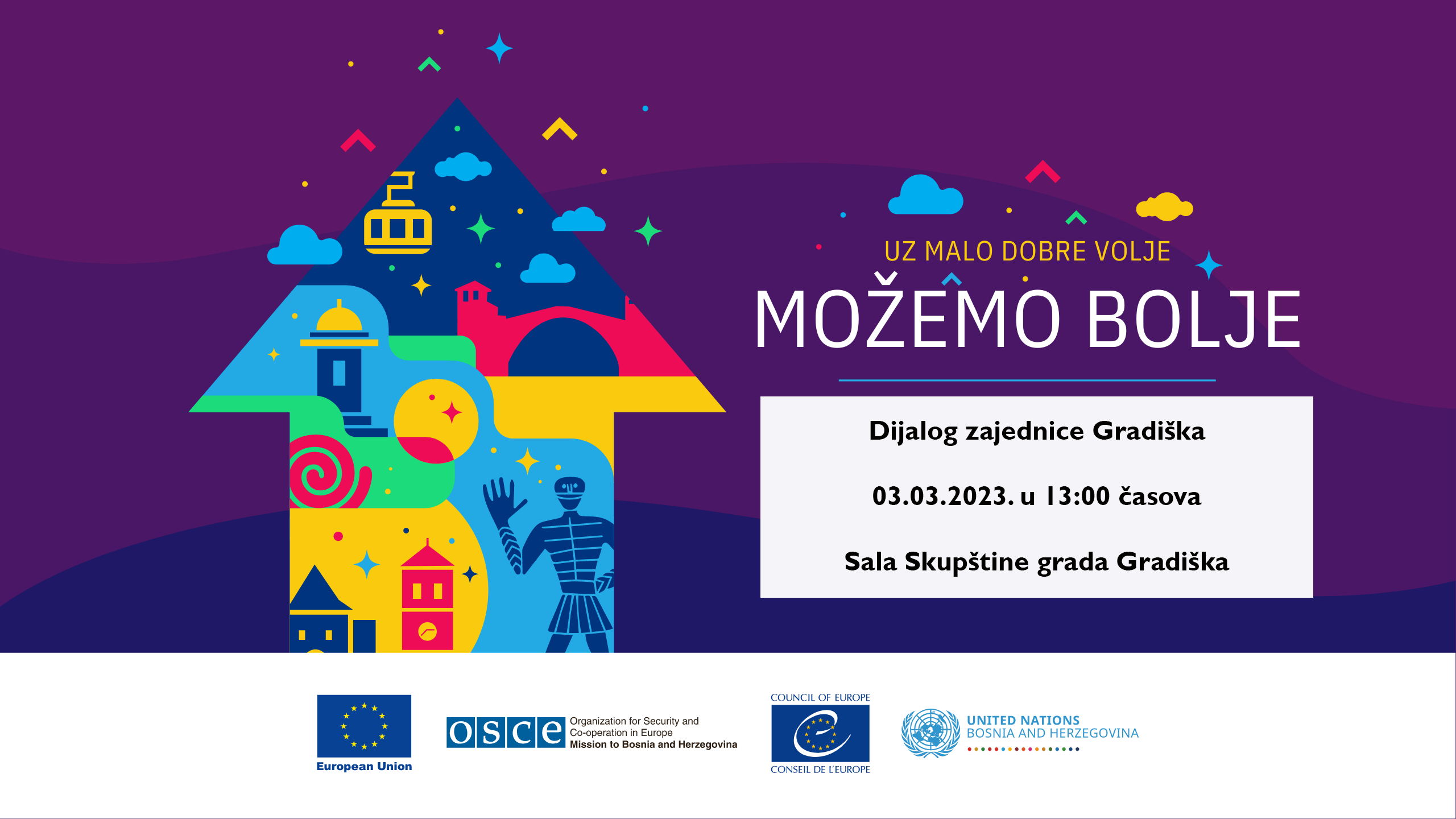 Позивамо грађанке и грађане, организације цивилног друштва и друге друштвене актере да кроз учешће на дијалогу буду дио позитивних промјена у нашој заједници, јер уз мало добре воље, МОЖЕМО БОЉЕ!