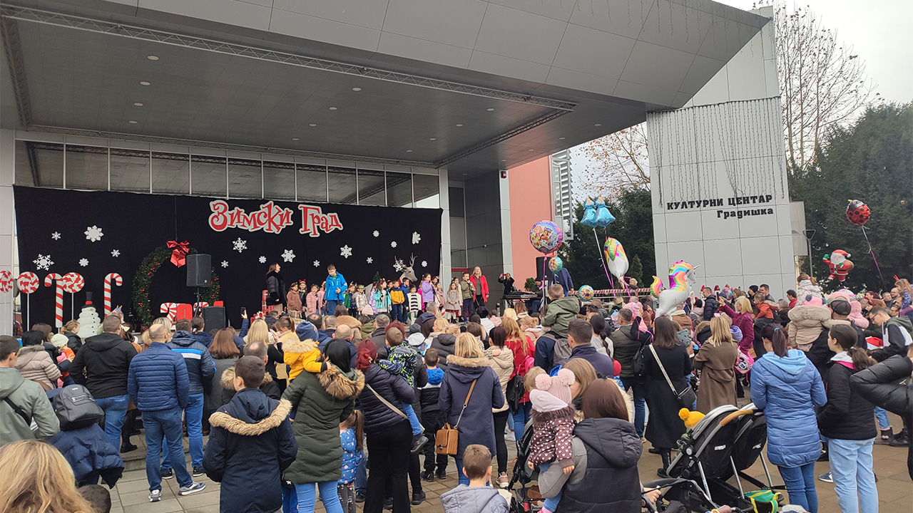 Уз концерт бањалучког Дјечијег хора „Врапчићи“ и аниматоре,  на позорници Зимског града испред Културног центра Градишка, бројни малишани прославили су Дјечију нову годину.