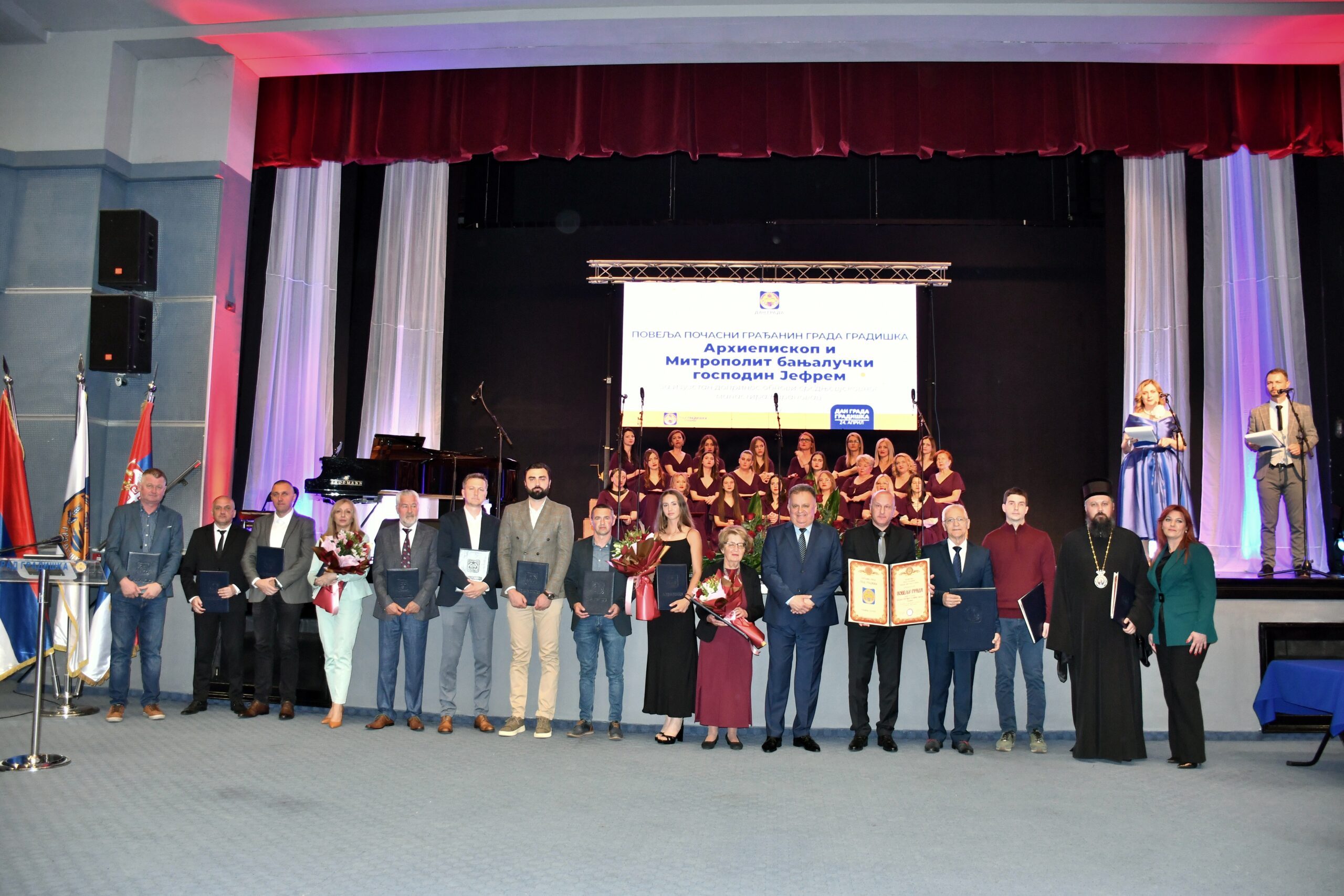 Поводом великог јубилеја, 80. годишњице од ослобођења Градишке од окупатора у Другом свјетском рату синоћ је у Културном центру Градишка одржана Академија на којој су додијељене Повеље и Захвалнице појединцима и колективима који су дали посебан допринос у развоју града кроз различите облике дјеловања.