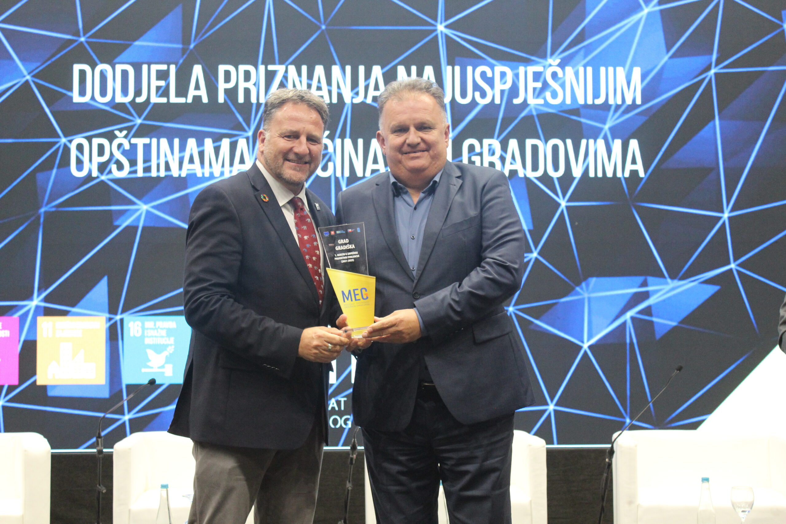 На завршној конференцији друге фазе МЕГ пројекта, одржаној 4. новембра 2025. године, Град Градишка је остварио изузетан успјех, заузевши прво мјесто у укупној евалуацији пројекта са 93,60% испуњености критеријума.